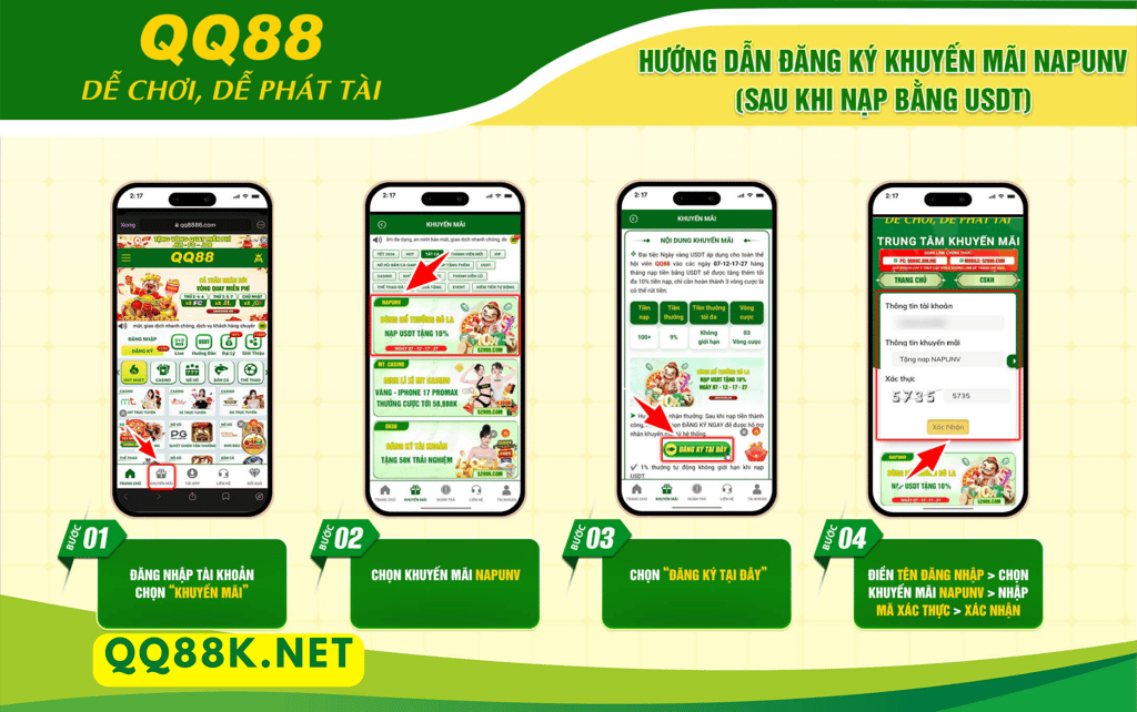 QQ88K Bùng Nổ Thưởng Đô La | Nạp USDT Nhận Ngay 5% Thưởng